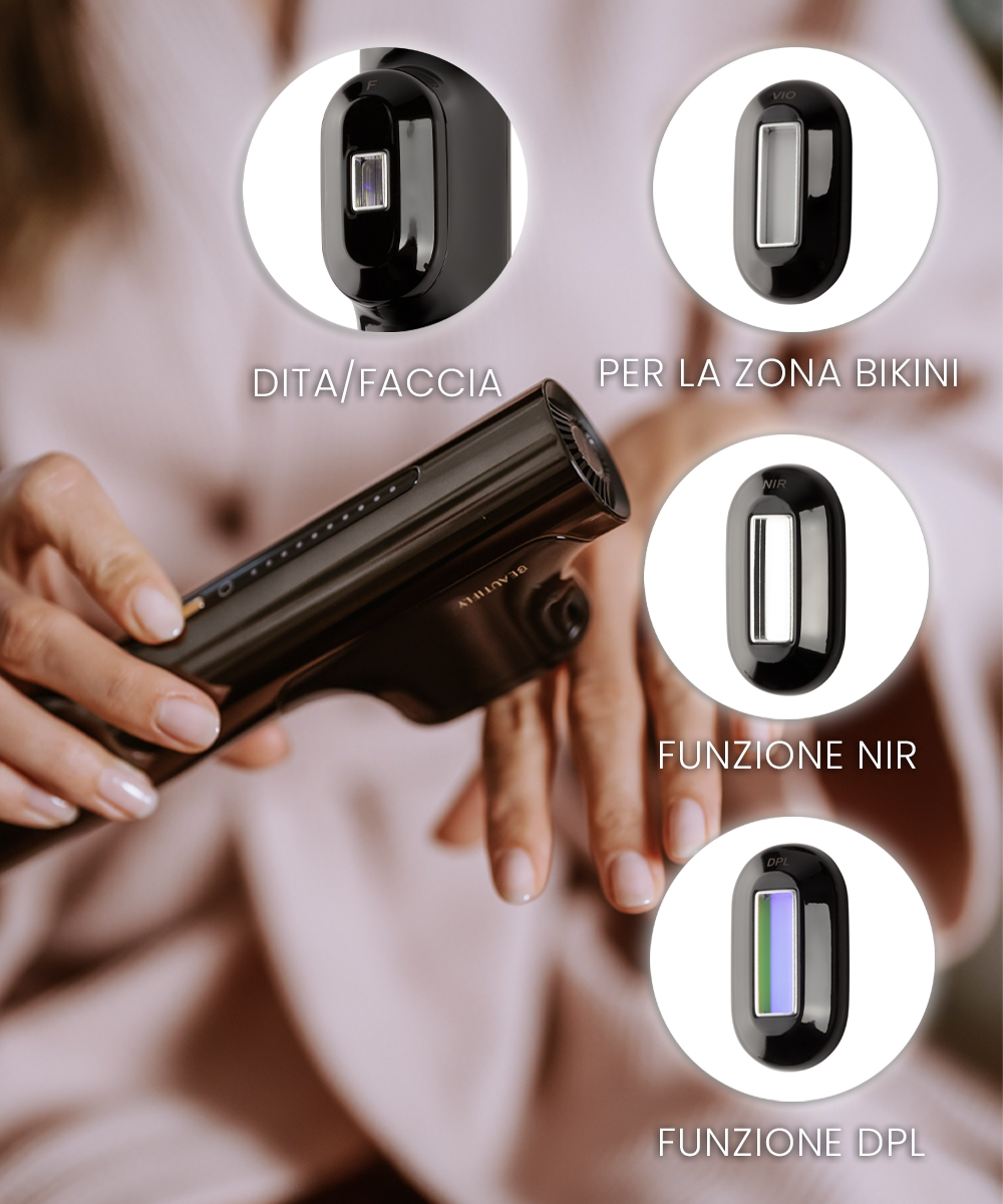 Dispositivo cosmetico innovativo e compatto, che rappresenta l’essenza delle più recenti tecnologie dei saloni di bellezza.